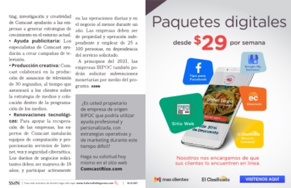 • Renovaciones tecnológicas : Para apoyar la recuperación de las empresas , los expertos de Comcast instalarán equipos de computación y proporcionarán servicios de Internet , voz y seguridad cibernética . Los dueños de negocios solicitantes deben ser mayores de 18 años , y participar activamente en las operaciones diarias y en el negocio al menos durante un año . Las empresas deben ser de propiedad y operación independiente y emplear de 25 a 100 personas , en dependencia del servicio solicitado . A principios del 2021 , las empresas BIPOC también podrán solicitar subvenciones monetarias por medio del programa . SSDN
