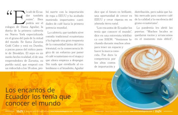 dice que el futuro es brillante , una oportunidad de crecer en EEUU y crear riqueza en su añorada tierra natal . “ Los encantos de Ecuador los tenía que conocer el mundo ”, dice en una entrevista telefónica con SSDN . “ Veníamos luchando durante muchos años para tener un espacio y hacer la marca conocida . Fue dura la competencia por los altos costos de importación y distribución , pero sabía que había mercado para nuestro café de la calidad y la excelencia del grano ecuatoriano ”. La pandemia les abrió las puertas . “ Muchos locales se quedaron vacíos y arrancamos en el momento más difícil ”,