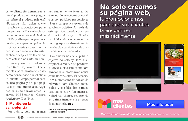 5 . Monitoree la competencia Por último , pero no menos importante : entrevistar a los clientes de productos y servicios competitivos proporcionará una perspectiva externa de su cliente objetivo . A través de este ejercicio , puede comprender las fortalezas y debilidades percibidas de sus competidores , algo que es absolutamente invaluable cuando trata de diferenciarse en el mercado . La comprensión de su público objetivo no solo ayudará a su empresa a validar su producto o servicio , sino que continuará brindándole información sobre cómo llegar a ellos . El desarrollo y la promoción de contenido relevante para clientes potenciales y establecidos aumentará las ventas y fomentará la lealtad del cliente , reduciendo en última instancia los costos de su negocio . SSDN