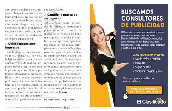 Las tarjetas de presentación , volantes , pancartas , carteles , boletines informativos y cualquier otro tipo de material impreso pueden ser la primera impresión que los clientes potenciales tienen de su empresa . El uso de artículos impresos profesionales y bien diseñados para que los clientes sepan lo que hace , puede transmitir el mensaje correcto a los consumidores de que sus productos o servicios pueden satisfacer Con información de Family Features