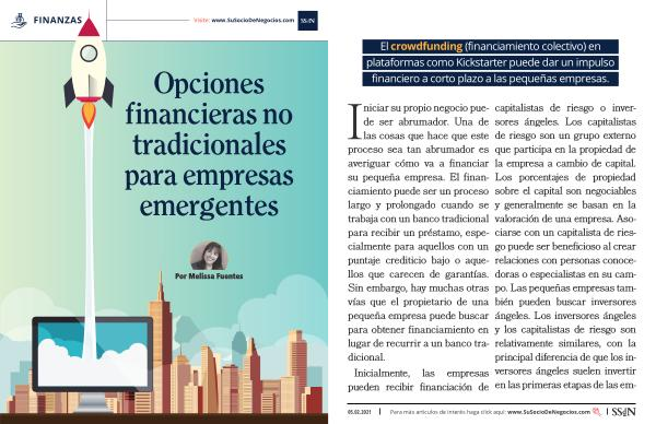 Iniciar su propio negocio puede ser abrumador . Una de las cosas que hace que este proceso sea tan abrumador es averiguar cómo va a financiar su pequeña empresa . El financiamiento puede ser un proceso largo y prolongado cuando se trabaja con un banco tradicional para recibir un préstamo , especialmente para aquellos con un puntaje crediticio bajo o aquellos que carecen de garantías . Sin embargo , hay muchas otras vías que el propietario de una pequeña empresa puede buscar para obtener financiamiento en lugar de recurrir a un banco tradicional . Inicialmente , las empresas pueden recibir financiación de capitalistas de riesgo o inversores ángeles . Los capitalistas de riesgo son un grupo externo que participa en la propiedad de la empresa a cambio de capital . Los porcentajes de propiedad sobre el capital son negociables y generalmente se basan en la valoración de una empresa . Asociarse con un capitalista de riesgo puede ser beneficioso al crear relaciones con personas conocedoras o especialistas en su campo . Las pequeñas empresas también pueden buscar inversores ángeles . Los inversores ángeles y los capitalistas de riesgo son relativamente similares , con la principal diferencia de que los inversores ángeles suelen invertir en las primeras etapas de las em-