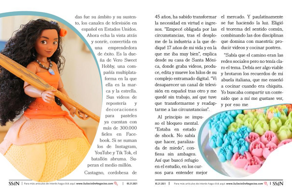 45 años , ha sabido transformar la necesidad en virtud e ingresos . “ Empecé obligada por las circunstancias , tras el desplome de la industria a la que dediqué 17 años de mi vida y en la que me iba muy bien ”, explica desde su casa de Santa Mónica , donde graba videos , produce , edita y mueve los hilos de su complejo entramado digital . “ Vi desaparecer un canal de televisión en español tras otro y me quedé sin trabajo , así que tuve que transformarme y readaptarme a las circunstancias ”. Al principio se impuso el bloqueo mental . “ Estaba en estado de shock . No sabía que hacer , paralizada de miedo ”, confiesa sin ambages . Así que buscó refugio en el estudio , en los cursos para entender mejor el mercado . Y paulatinamente se fue haciendo la luz . Eligió el teorema del sentido común , combinando las dos disciplinas que domina con maestría : producir videos y cocinar postres . “ Sabía que el camino eran las redes sociales pero no tenía claro el tema . Debía ser algo viable y brotaron los recuerdos de mi abuela italiana , que me enseñó a cocinar cuando era chiquita . Yo buscaba compartir un contenido que a mí me gustase ver , y por eso me