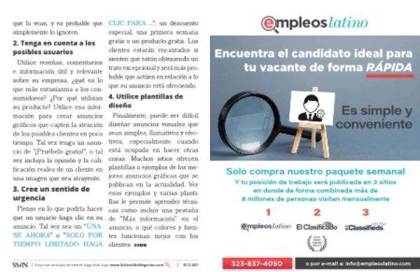 323-837-4050 o por e-mail a : info @ empleoslatino . com