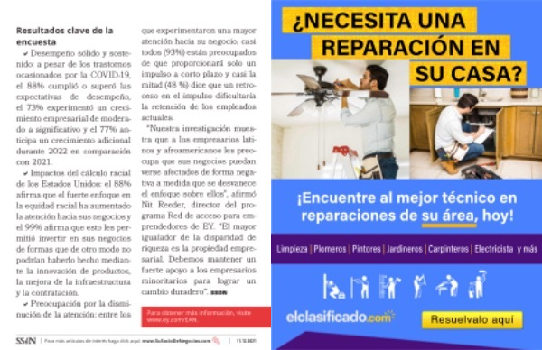Resultados clave de la encuesta �Desempeño sólido y sostenido : a pesar de los trastornos ocasionados por la COVID-19 , el 88 % cumplió o superó las expectativas de desempeño , el 73 % experimentó un crecimiento empresarial de moderado a significativo y el 77 % anticipa un crecimiento adicional durante 2022 en comparación con 2021 . �Impactos del cálculo racial de los Estados Unidos : el 88 % afirma que el fuerte enfoque en la equidad racial ha aumentado la atención hacia sus negocios y el 99 % afirma que esto les permitió invertir en sus negocios de formas que de otro modo no podrían haberlo hecho mediante la innovación de productos , la mejora de la infraestructura y la contratación . �Preocupación por la disminución de la atención : entre los que experimentaron una mayor atención hacia su negocio , casi todos ( 93 %) están preocupados de que proporcionará solo un impulso a corto plazo y casi la mitad ( 48 %) dice que un retroceso en el impulso dificultaría la retención de los empleados actuales . “ Nuestra investigación muestra que a los empresarios latinos y afroamericanos les preocupa que sus negocios puedan verse afectados de forma negativa a medida que se desvanece el enfoque sobre ellos ”, afirmó Nit Reeder , director del programa Red de acceso para emprendedores de EY . “ El mayor igualador de la disparidad de riqueza es la propiedad empresarial . Debemos mantener un fuerte apoyo a los empresarios minoritarios para lograr un cambio duradero ”. SSDN