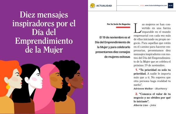 Las mujeres se han convertido en una fuerza imparable en el mundo empresarial con cada vez más de ellas iniciando su propio negocio . Para aquellas que están en el camino para hacerse empresarias , presentamos diez mensajes inspiradores con motivo del Día del Emprendimiento de la Mujer que se celebra el próximo 19 de noviembre . 1 . “ Tu prioridad es solo tu prioridad . A nadie le importa más que a ti . No esperes que otra persona haga realidad tu sueño ”.