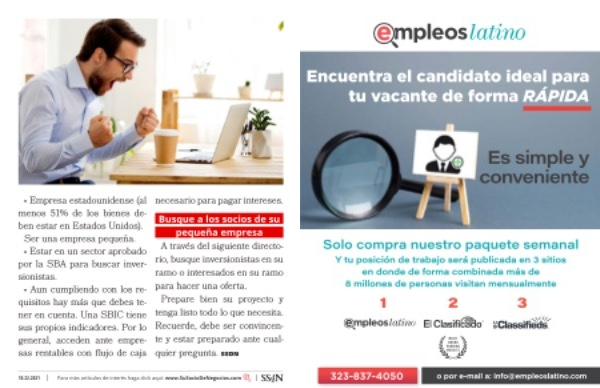 Busque a los socios de su pequeña empresa A través del siguiente directorio , busque inversionistas en su ramo o interesados en su ramo para hacer una oferta . Prepare bien su proyecto y tenga listo todo lo que necesita . Recuerde , debe ser convincente y estar preparado ante cualquier pregunta . SSDN
