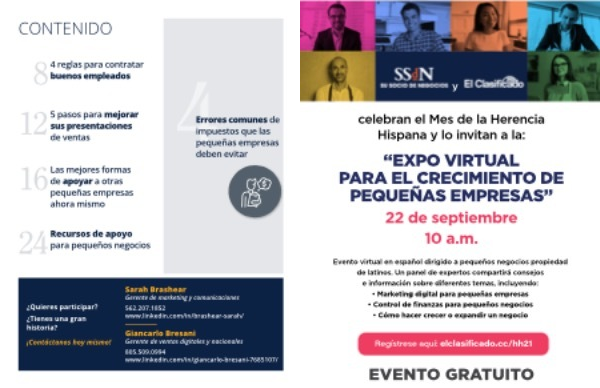 Evento virtual en español dirigido a pequeños negocios propiedad de latinos . Un panel de expertos compartirá consejos e información sobre diferentes temas , incluyendo :