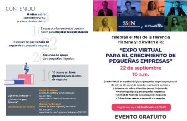 Evento virtual en español dirigido a pequeños negocios propiedad de latinos . Un panel de expertos compartirá consejos e información sobre diferentes temas , incluyendo :