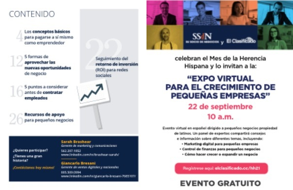 Evento virtual en español dirigido a pequeños negocios propiedad de latinos . Un panel de expertos compartirá consejos e información sobre diferentes temas , incluyendo :