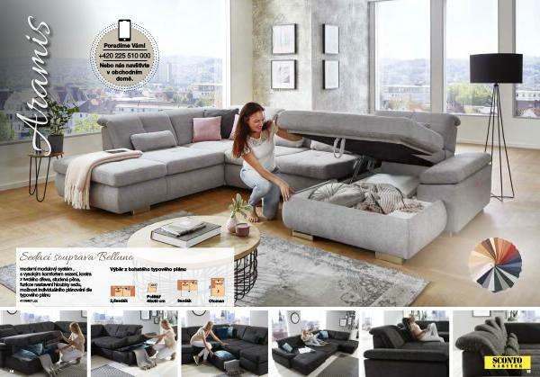 moderní modulový systém ‚ s vysokým komfortem sezení , kostra z tvrdého dřeva , studená pěna , funkce nastavení hloubky sedu , možnost individuálního plánování dle typového plánu