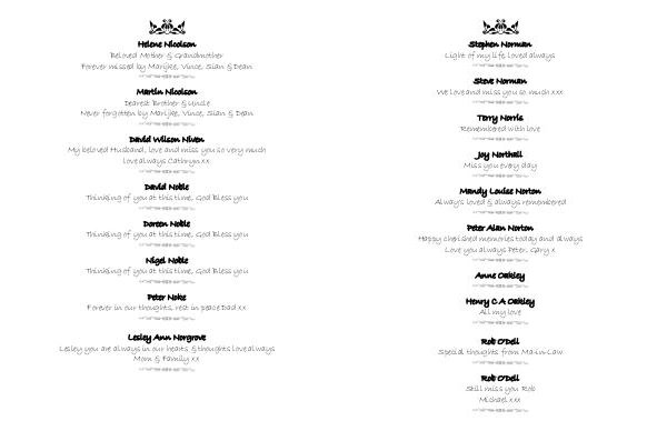 Forever missed by Marijke, Vince, Sian & Dean