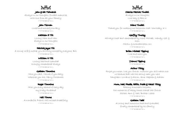 Arthur Titley Forget you never, love you forever, we know you still watch over us because that was the caring man you were Daughters Lorraine & Alison, Sons Stephen & Adrian