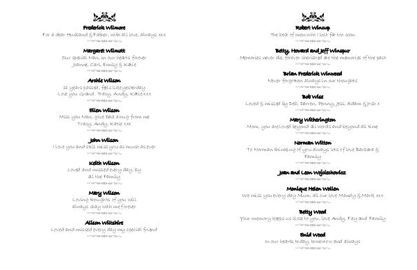 Loved & missed by Deb, Darren, Penny, Jess, Adam & Josh x