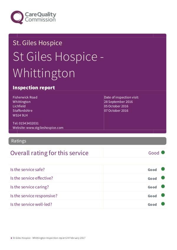1 St Giles Hospice - Whittington Inspection report 24 February 2017