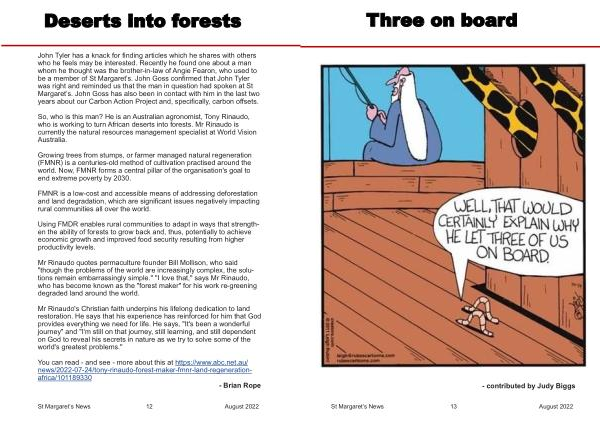 John Tyler has a knack for finding articles which he shares with others who he feels may be interested . Recently he found one about a man whom he thought was the brother-in-law of Angie Fearon , who used to be a member of St Margaret ’ s . John Goss confirmed that John Tyler was right and reminded us that the man in question had spoken at St Margaret ’ s . John Goss has also been in contact with him in the last two years about our Carbon Action Project and , specifically , carbon offsets .