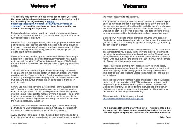 As a member of the Canberra Critics Circle , I nominated the artist for one of their 2022 Awards , and was delighted when the nomination was approved by the full Circle and Mike received the Award .