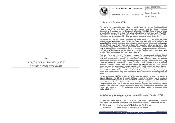 yang ditetapkan oleh UPH di atas SN Dikti. Standar Program Studi dipandang sangat