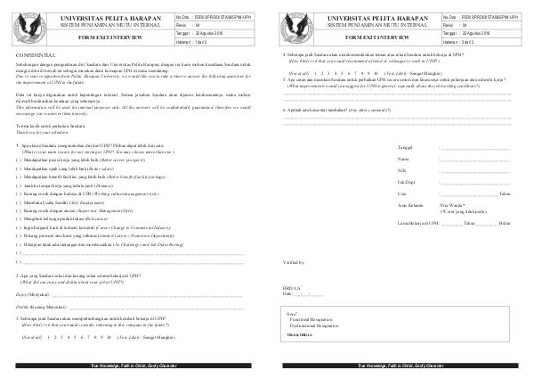 'XHWR\RXUUHVLJQDWLRQIURP3HOLWD+DUDSDQ8QLYHUVLW\ZHZRXOGOLNH\RXWRWDNHDWLPHWRDQVZHUWKHIROORZLQJTXHVWLRQVIRU