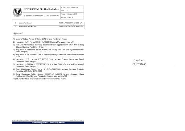 5) Keputusan YUPH Nomor 032/SK-YUPH/2016 tentang Statuta Universitas Pelita Harapan