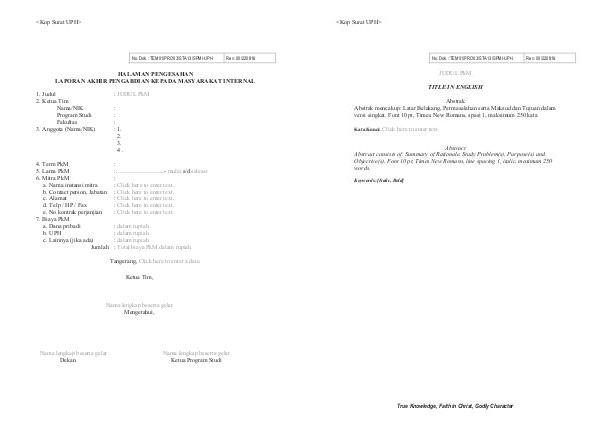 LAPORAN AKHIR PENGABDIAN KEPADA MASYARAKAT INTERNAL