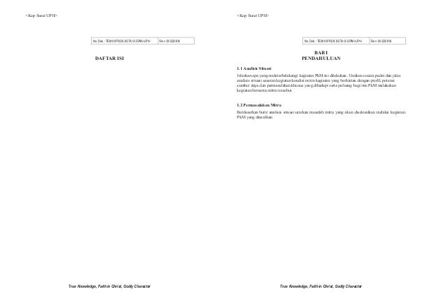No. Dok.: TEM01/PRO03/STA13/SPMI-UPH DAFTAR ISI True Knowledge, Faith in Christ, Godly Character Rev: 00/220816