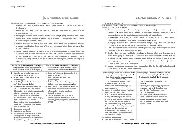 proposal kepada pihak keuangan UPH dengan tembusan untuk dosen pengusul dan