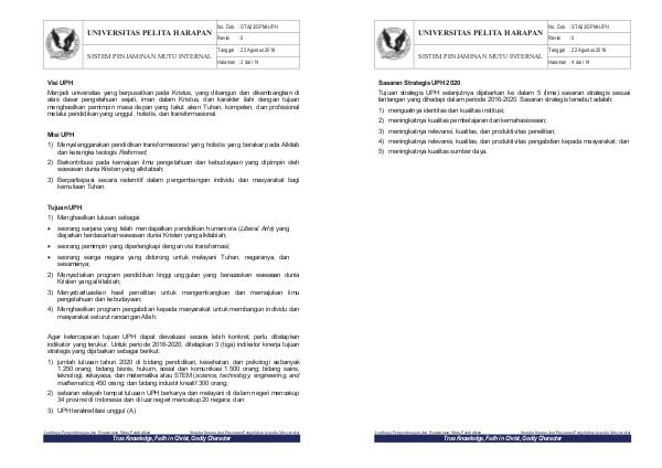 Tujuan strategis UPH selanjutnya dijabarkan ke dalam 5 (lima) sasaran strategis sesuai