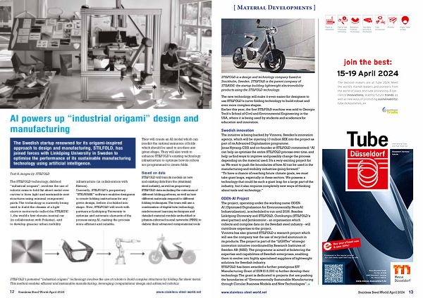 Swedish innovation The initiative is being backed by Vinnova , Sweden ’ s innovation agency , which will be injecting 10 million SEK into the project as part of its Advanced Digitalization programme . Jonas Nyvang , CEO and co-founder at STILFOLD commented : “ AI can help us optimise the entire STILFOLD process over time , and help us find ways to improve and possibly change the process depending on the material used . It ’ s a very exciting project for us . We want to push the boundaries of how AI can be used in the manufacturing and mobility industries going forward .” “ To have a chance of reaching future climate goals , we must take giant leaps , especially in these sectors . We possess a technology that could be such a giant leap for a large part of the industry , but it also requires completely new ways of thinking about tools and technology .”