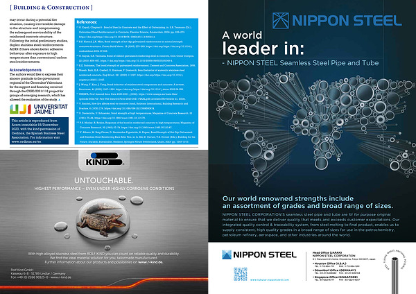 may occur during a potential fire situation , causing irreversible damage to the structure and compromising the subsequent serviceability of the reinforced concrete structure . Following the initial preliminary studies , duplex stainless steel reinforcements ACX915 have shown better adhesive behaviour after exposure to high temperatures than conventional carbon steel reinforcements .
