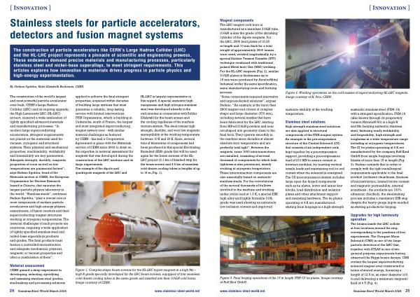The construction of the world ’ s largest and most powerful particle accelerator ever built , CERN ’ s Large Hadron Collider ( LHC ) and its ongoing upgrade , the High Luminosity LHC ( HL-LHC ) project , required a wide application of tightly specified advanced materials and manufacturing processes . “ In modern large superconducting accelerators , stringent requirements are placed on the materials used for vacuum , cryogenic and structural systems . Their physical and mechanical properties , machinability , weldability and brazeability are key parameters . Adequate strength , ductility , magnetic properties at room as well as low temperatures are paramount factors ”, says Stefano Sgobba , head of the Materials section at CERN , the European Organization for Nuclear Research based in Geneva , that operates the largest particle physics laboratory in the world . “ Stainless steels ”, continues Stefano Sgobba , “ play a crucial role in most components of modern particle accelerators and high-energy physics experiments , of fusion reactors and their superconducting magnet structures working at cryogenic temperatures . The material challenges of such projects are enormous , requiring a wide application of tightly specified stainless steel and nickel-base superalloys products and grades . The final products must feature a controlled microstructure and adequate mechanical , physical , magnetic or vacuum properties and often a combination of them ”. applied to achieve the final stringent properties , acquired within decades of building large systems that must guarantee a reliable , long-lasting service with limited interventions . ITER Organization , which is building in Cadarache , south of France , the largest and most integrated superconducting magnet system ever - with similar material challenges as featured by CERN - has had a Cooperation Agreement in place with the Materials service of CERN since 2009 to draw on the expertise in material assessment for magnets that was developed during the construction of the LHC machine and its large experiments . The example of the dipole and quadrupole magnets of the LHC and