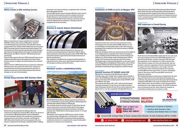 52 Stainless Steel World March 2024 www . stainless-steel-world . net