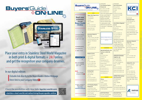 Check the possibilities with Vera Solis : bg @ kci-world . com stainless-steel-world . net / advertising / buyersguide-online