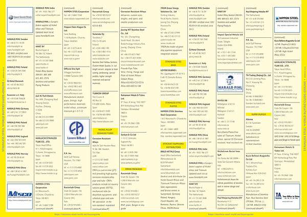 HART BV Beurtschipper 4 NL-3861 SC Nijkerk The Netherlands tel : + 31-33-245-3848 sales @ hartbv . nl www . hartbv . nl Nickel Alloy Stockist 200 / 201 , 400 , 600 625 , 825 , C276 Seamless and welded Piping Products