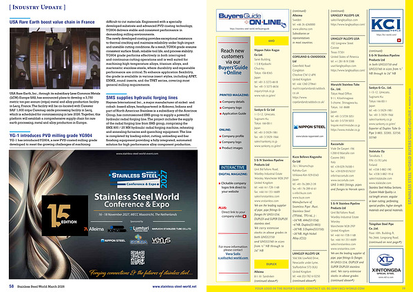58 Stainless Steel World March 2026 www. stainless-steel-world. net