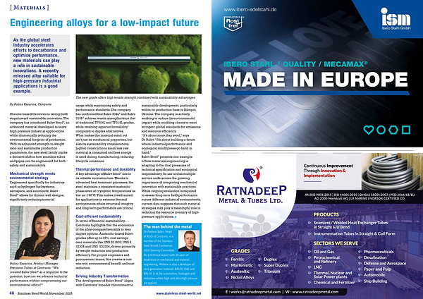 48 Stainless Steel World November 2025 www. stainless-steel-world. net