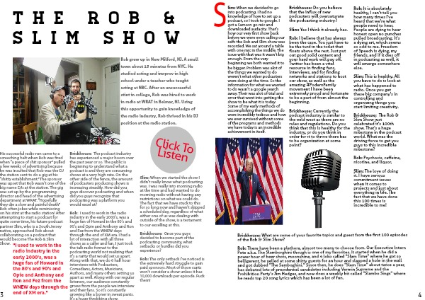 His successful radio run came to a screeching halt when Rob was fired when “a piece of shit sponsor” pulled a few weeks of advertising because he was insulted that Rob was the DJ the station sent to do a gig at his “shitty establishment.” The sponsor was upset that Rob wasn't one of the big name DJs at the station. The gig was set up by the programming director and head of the advertising department at WRAT. “Hopefully they die a slow and painful death” Rob often jokes while reminiscing on his stint at the radio station! After attempting to start a podcast for quite some time, his future podcast partner Slim, who is a South Jersey native, approached Rob about collaborating on a podcast that would become The Rob & Slim Show.