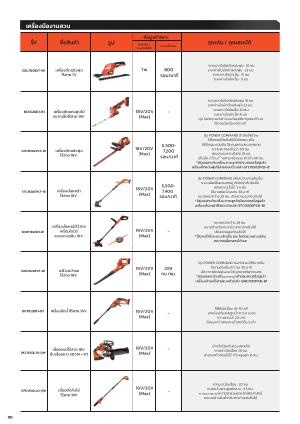 ความยาวใบมีดตัดแต่งพุ่ม 10 ซม . ระยะห่างใบมีดตัดแต่งพุ่ม 23 มม . ความยาวใบมีดเล็ม 20 ซม . ระยะห่างใบมีดเล็ม 8 มม . ปุ�ม Safety switch ป�องกันอุบัติเหตุขณะใช้งาน ใช้งานต่อเนื �อง 60 นาที |