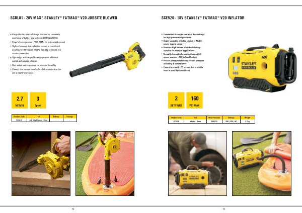 Product Code Tool Max Pressure Voltage Weight SCE520 Inflator - Bare 160 PSI 20V / 12V / AC 2.7kg