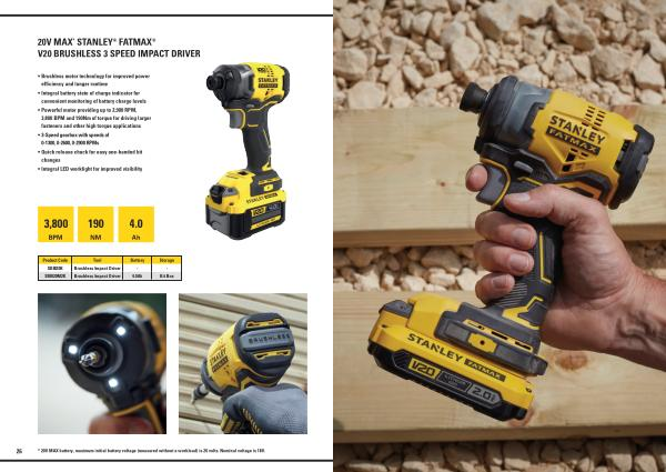 20V MAX * STANLEY ® FATMAX ® V20 BRUSHLESS 3 SPEED IMPACT DRIVER