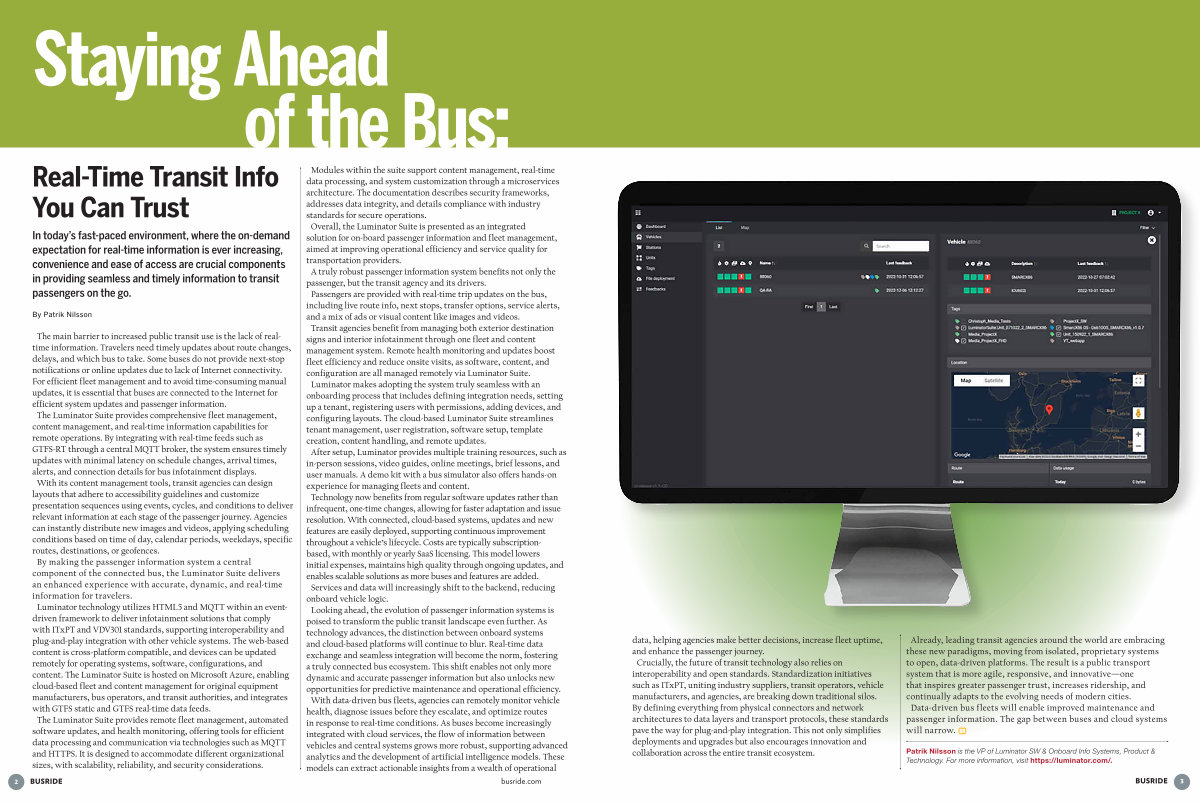 Patrik Nilsson is the VP of Luminator SW & Onboard Info Systems, Product & Technology. For more information, visit https:// luminator. com /.
