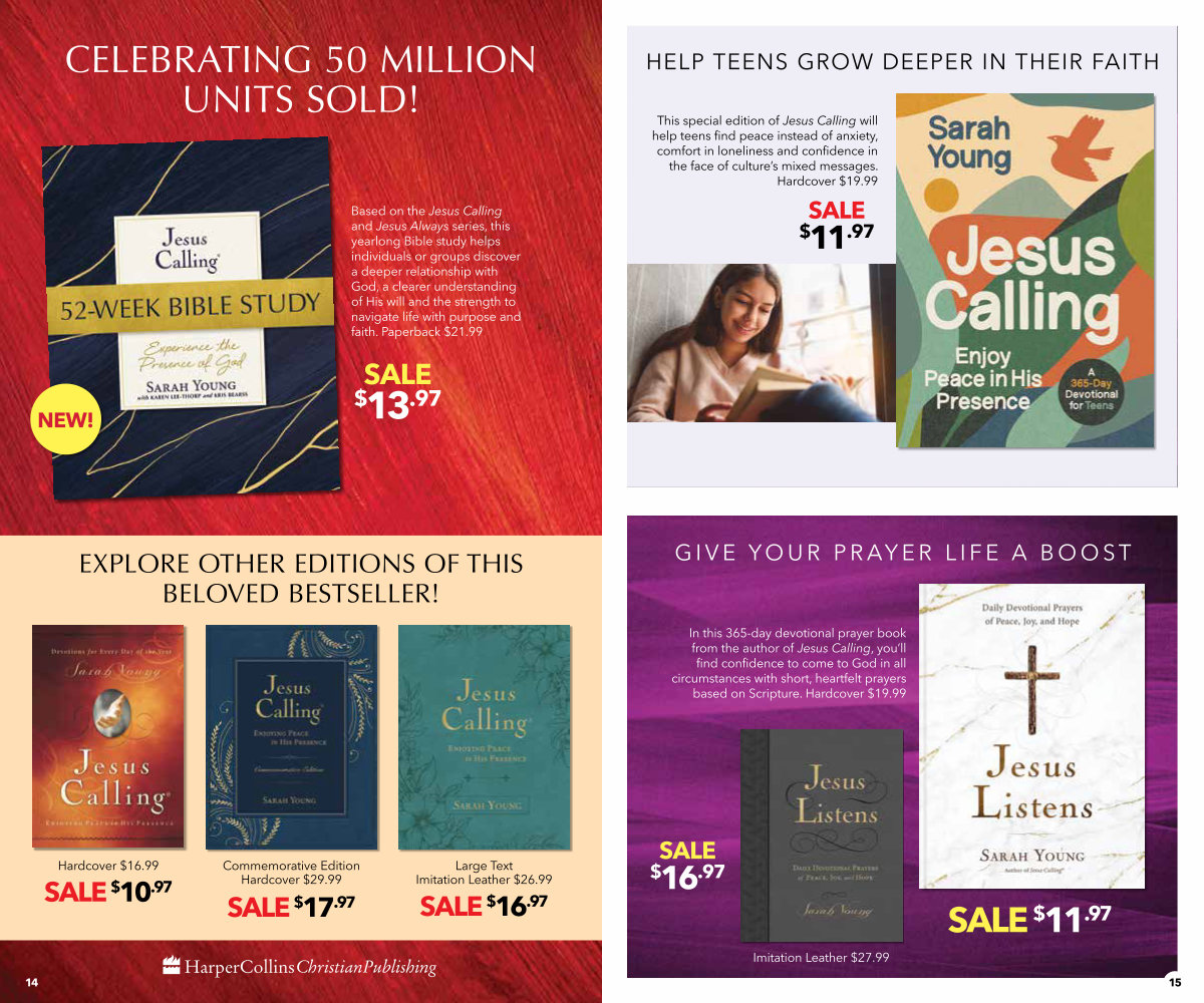 This special edition of Jesus Calling will help teens find peace instead of anxiety, comfort in loneliness and confidence in the face of culture’ s mixed messages. Hardcover $ 19.99