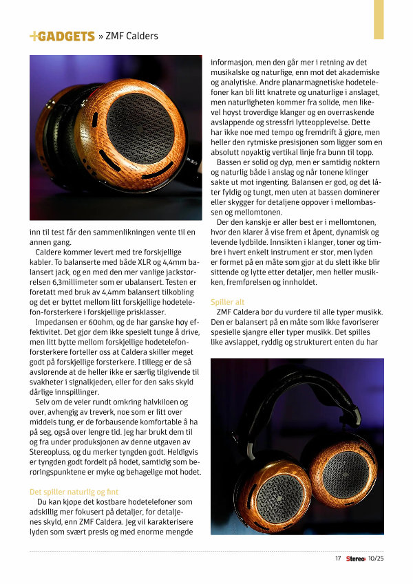 Du kan kjøpe det kostbare hodetelefoner som adskillig mer fokusert på detaljer, for detaljenes skyld, enn ZMF Caldera. Jeg vil karakterisere lyden som svært presis og med enorme mengde