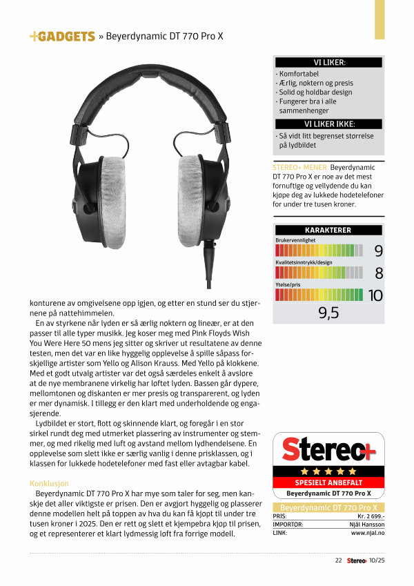 Konklusjon Beyerdynamic DT 770 Pro X har mye som taler for seg, men kanskje det aller viktigste er prisen. Den er avgjort hyggelig og plasserer denne modellen helt på toppen av hva du kan få kjøpt til under tre tusen kroner i 2025. Den er rett og slett et kjempebra kjøp til prisen, og et representerer et klart lydmessig løft fra forrige modell.