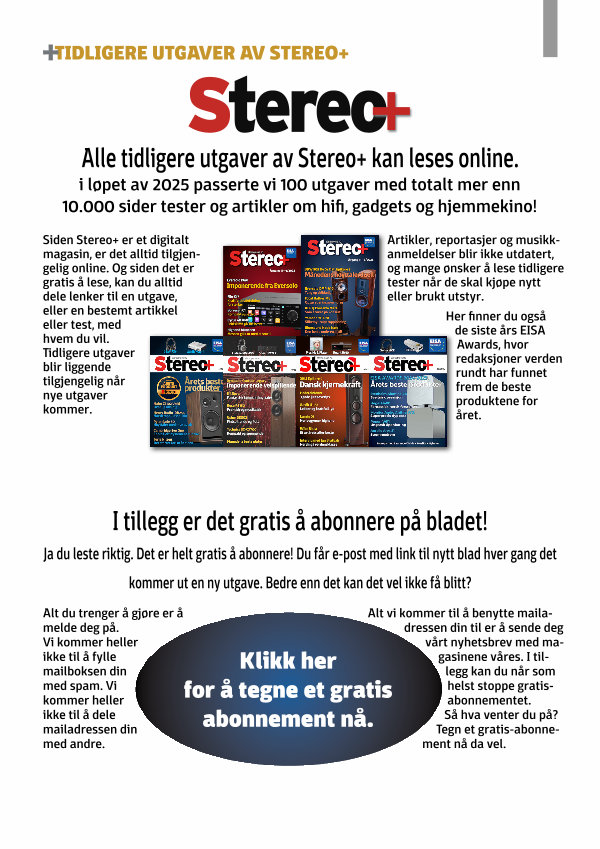 i løpet av 2025 passerte vi 100 utgaver med totalt mer enn 10.000 sider tester og artikler om hifi, gadgets og hjemmekino!
