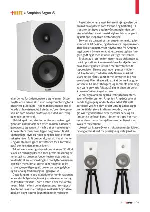 Vi fikk også anledning til å teste produsentens egen effektforsterker, Amphion Amp500, som vi hadde tilgjengelig under testen. Med 330 watt per kanal ved fire ohm er det umulig å ikke legge merke til det store kraftoverskuddet, noe som gir svært god kontroll over membranene og en fantastisk definert bass – det er nettopp her man hører den største forskjellen sammenlignet med svakere forsterkere.