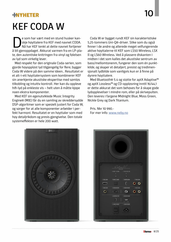 De som har vært med en stund husker kanskje høyttalere fra KEF med navnet CODA. Nå har KEF tenkt at dette navnet fortjener å bli gjenoppdaget. Akkurat varmen fra en LP-plate, den autentiske knitringen fra vinyl og følelsen av lyd som virkelig lever.