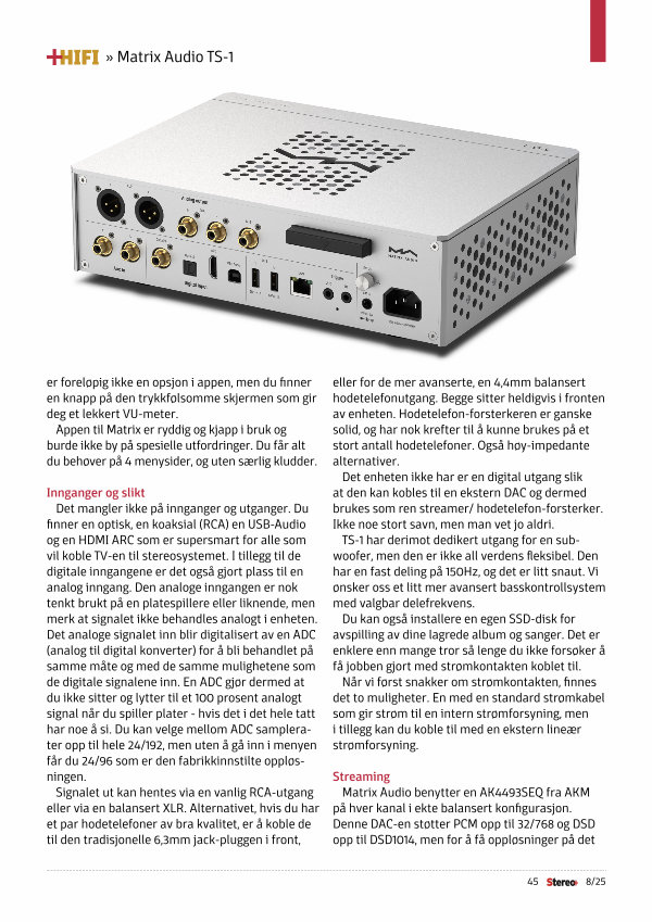 Det enheten ikke har er en digital utgang slik at den kan kobles til en ekstern DAC og dermed brukes som ren streamer / hodetelefon-forsterker. Ikke noe stort savn, men man vet jo aldri.