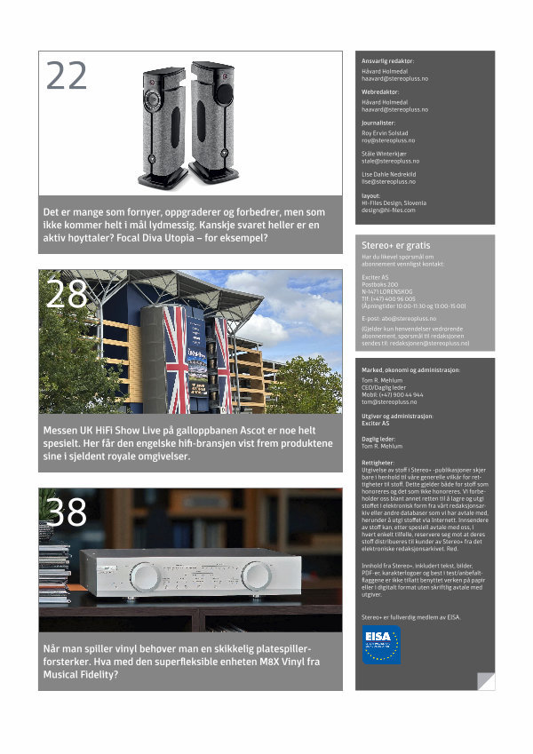 Innhold fra Stereo +, inkludert tekst, bilder, PDF-er, karakterlogoer og best i test / anbefaltflaggene er ikke tillatt benyttet verken på papir eller i digitalt format uten skriftlig avtale med utgiver.