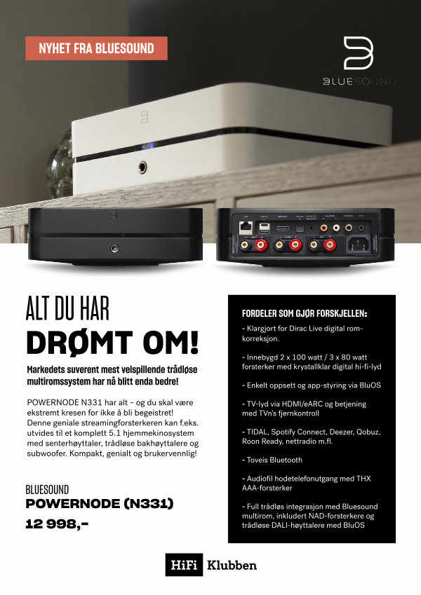 POWERNODE N331 har alt – og du skal være ekstremt kresen for ikke å bli begeistret! Denne geniale streamingforsterkeren kan f. eks. utvides til et komplett 5.1 hjemmekinosystem med senterhøyttaler, trådløse bakhøyttalere og subwoofer. Kompakt, genialt og brukervennlig!