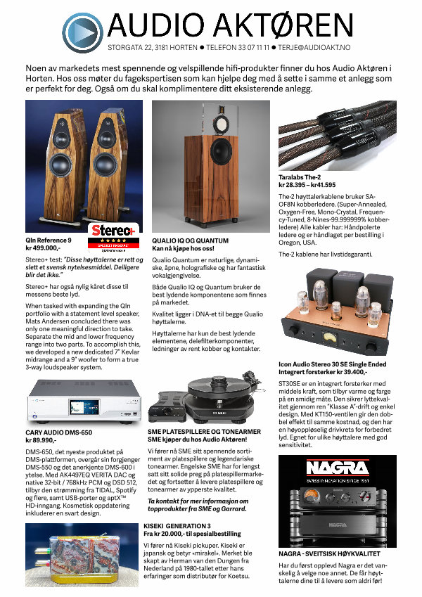 STORGATA 22, 3181 HORTEN • TELEFON 33 07 11 11 • TERJE @ AUDIOAKT. NO